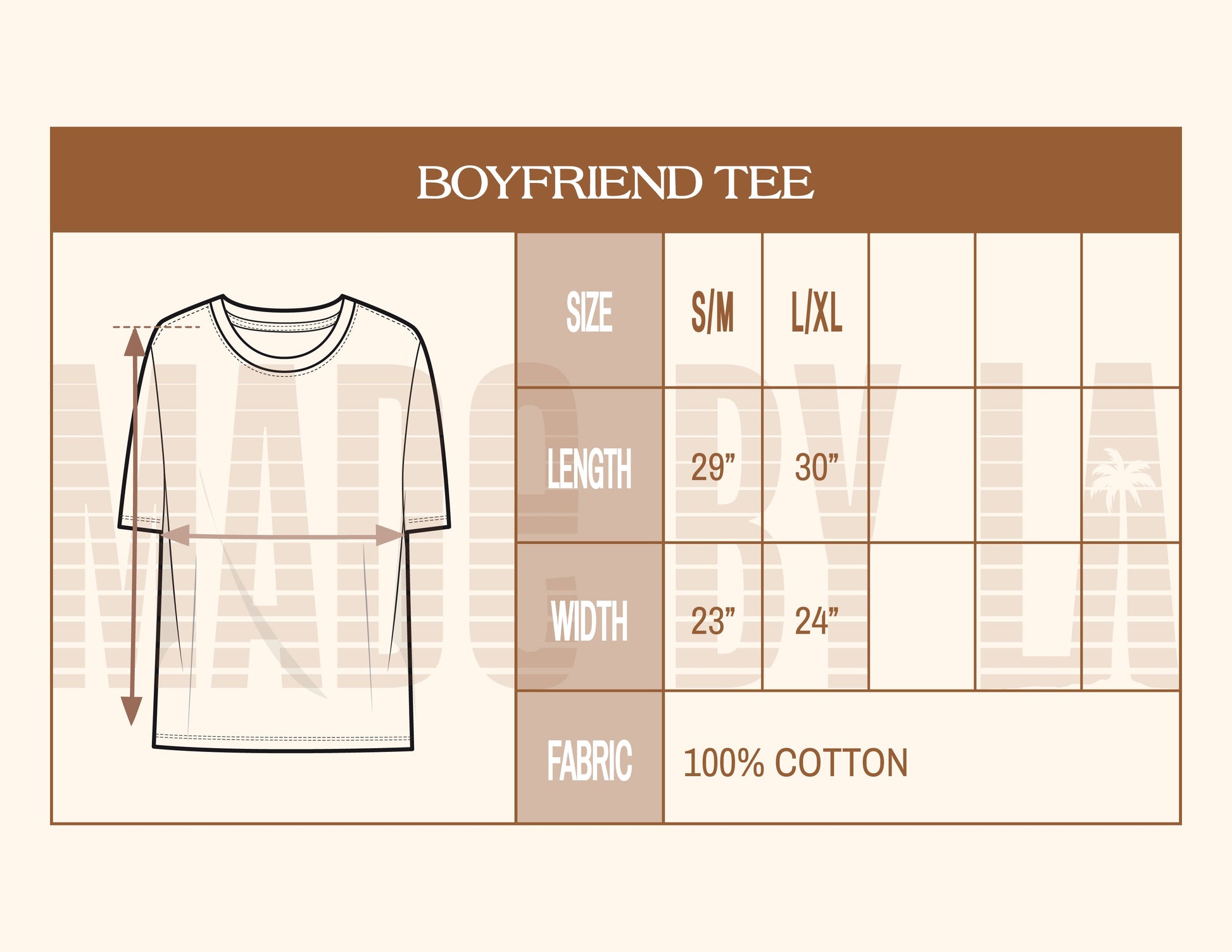 Please scroll through photos for measurements. Our advice: Take your favorite tee at home and measure from armpit to armpit & top shoulder straight down to the waist. Compare those measurements to our size chart and choose the size that reflects that measurement.